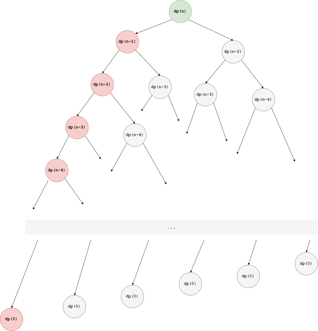 - Original Problem 해결: i 값이 n 이 될때가 원래 문제가 되므로 dp(n) 호출을 통해 원래 문제를 해결하는 것을 볼 수 있습니다.